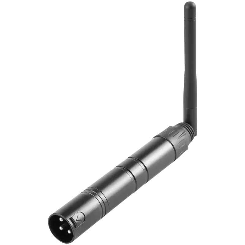 F-WDMX T 2,4 GHz to bezprzewodowy nadajnik DMX512 który przesyła sygnał pomiędzy sterownikiem DMX a urządzeniem wyposażonym w bezprzewodowy odbiornik. Jest to możliwe dzięki wykorzystaniu otwartego pasma ISM 2.4 Ghz, nie wymagającego licencji. Urządzenie zapewnia doskonałą modulację GFSK i wykorzystuje 126 kanałów automatycznie podbijanej częstotliwości, w celu wyeliminowania wszelkich zakłóceń. Urządzenie znajduje szerokie zastosowanie w połączeniu z produktami wyposażonymi w złącze XLR w trybie pracy DMX512. Tworząc bezprzewodowe stabilne połączenia w przestrzeniach gdzie istotne znaczenia ma kosmetyka wizualna, zdalna obsługa niewymagająca dodatkowego okablowania. Istotne cechy produktu: - Standardowy DMX512 z trzy rdzeniowy interfejsem,- Dioda RGB sygnalizująca status pracy urządzenia,- 126 kanałów automatycznie podbijanej częstotliwości, w celu zapewnienia nieprzerwanej komunikacji między urządzeniami,- Możliwość wykorzystywania 7 grup nadajników jednocześnie, - Automatyczne wybieranie wolnych od zakłóceń oraz opóźnień częstotliwości bez utraty pakietów transmisji.