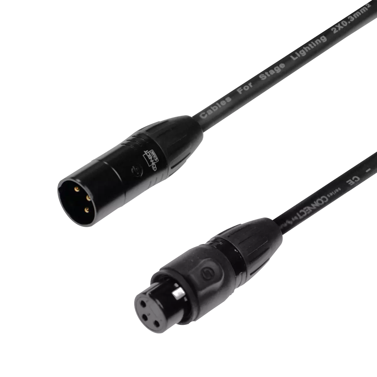 Profesjonalny przewód sygnałowy DMX o długości 0,5m dedykowany do profesjonalnych urządzeń scenicznych pracujących w instalacjach stałych i mobilnych.Wyposażony w złącza XLR 3-pinowe męskie i żeńskie o klasie szczelności IP65 zapewnia bezpieczne i stabilne podawanie sygnału sterującego DMX.Przewód cechuje się wysoką jakością oraz niezawodnością podczas intensywnej eksploatacji, znacząco ułatwiając i przyspieszając instalację systemów oświetleniowych.