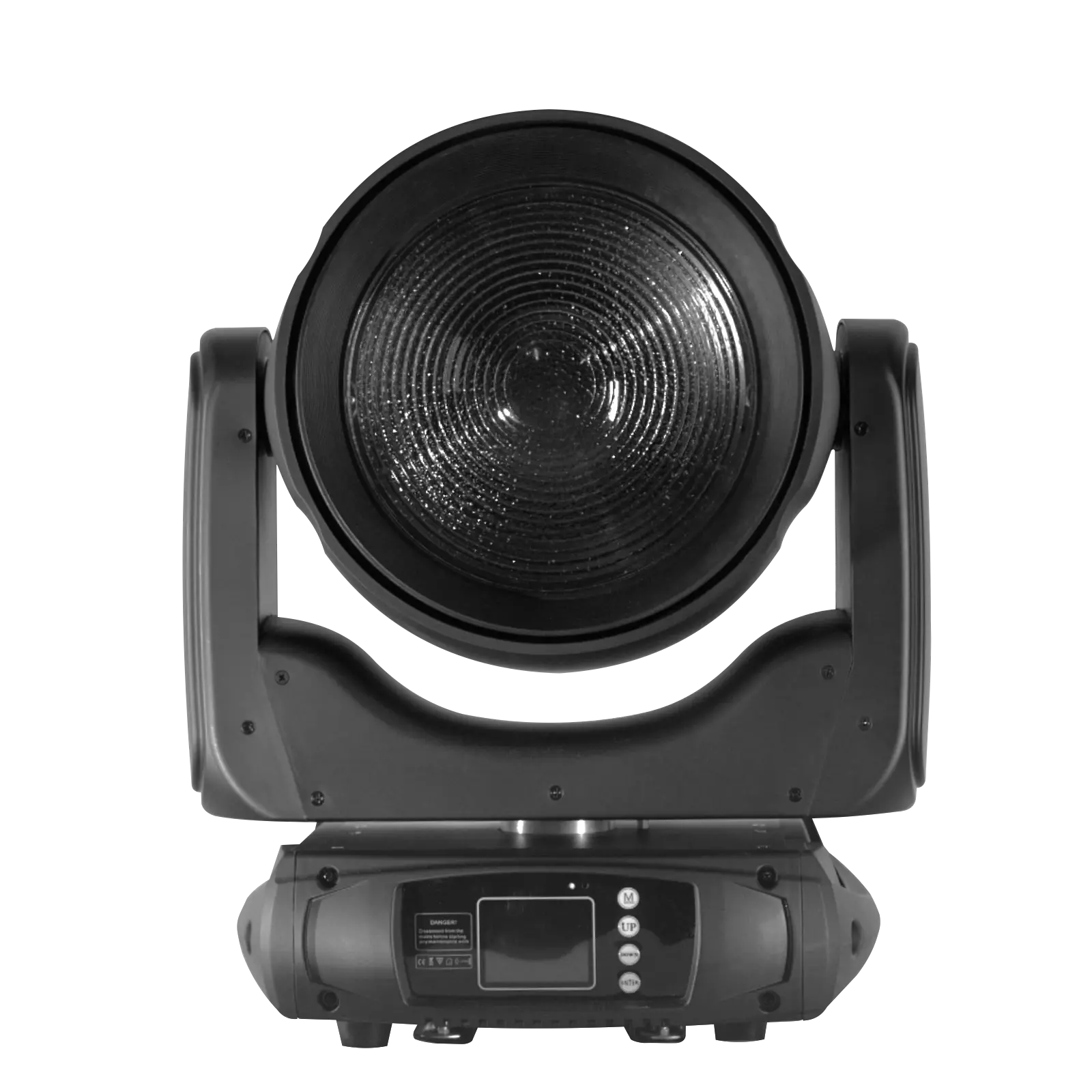 The 200 mm Fresnel lens combined with a motorized linear zoom of 8°–30° allows precise beam control — from a focused beam to a wide wash. The motorized linear focus (2.5–30 m) ensures perfect sharpness at any distance, while interchangeable Frost filters and a 360° rotating prism provide creative lighting possibilities.
