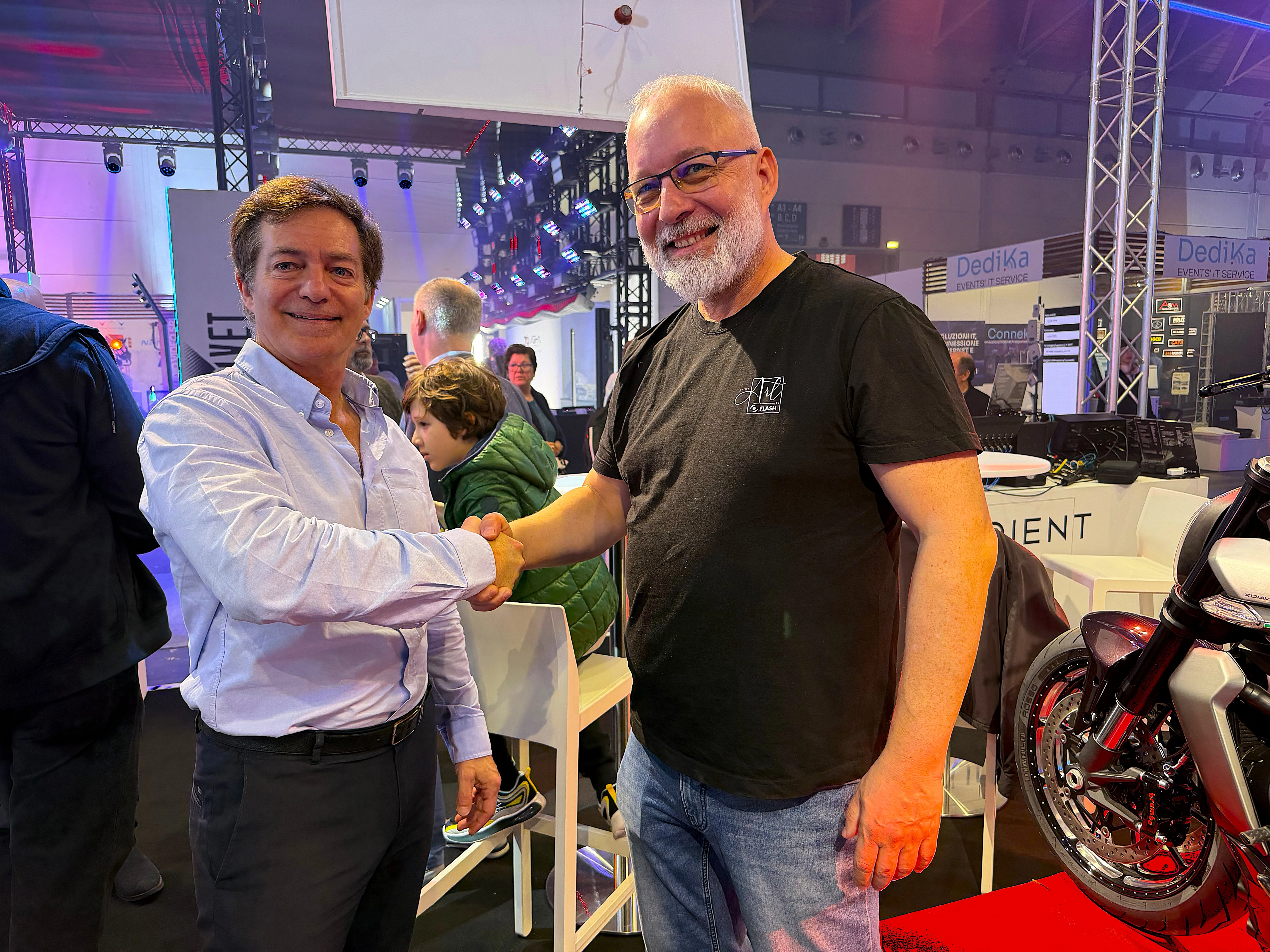 Tony Batllo (CEO of Holmusic) and Mariusz Butrym, captured in one of the photos from the event. It marks the beginning of a new chapter and joint development in Southern European markets.