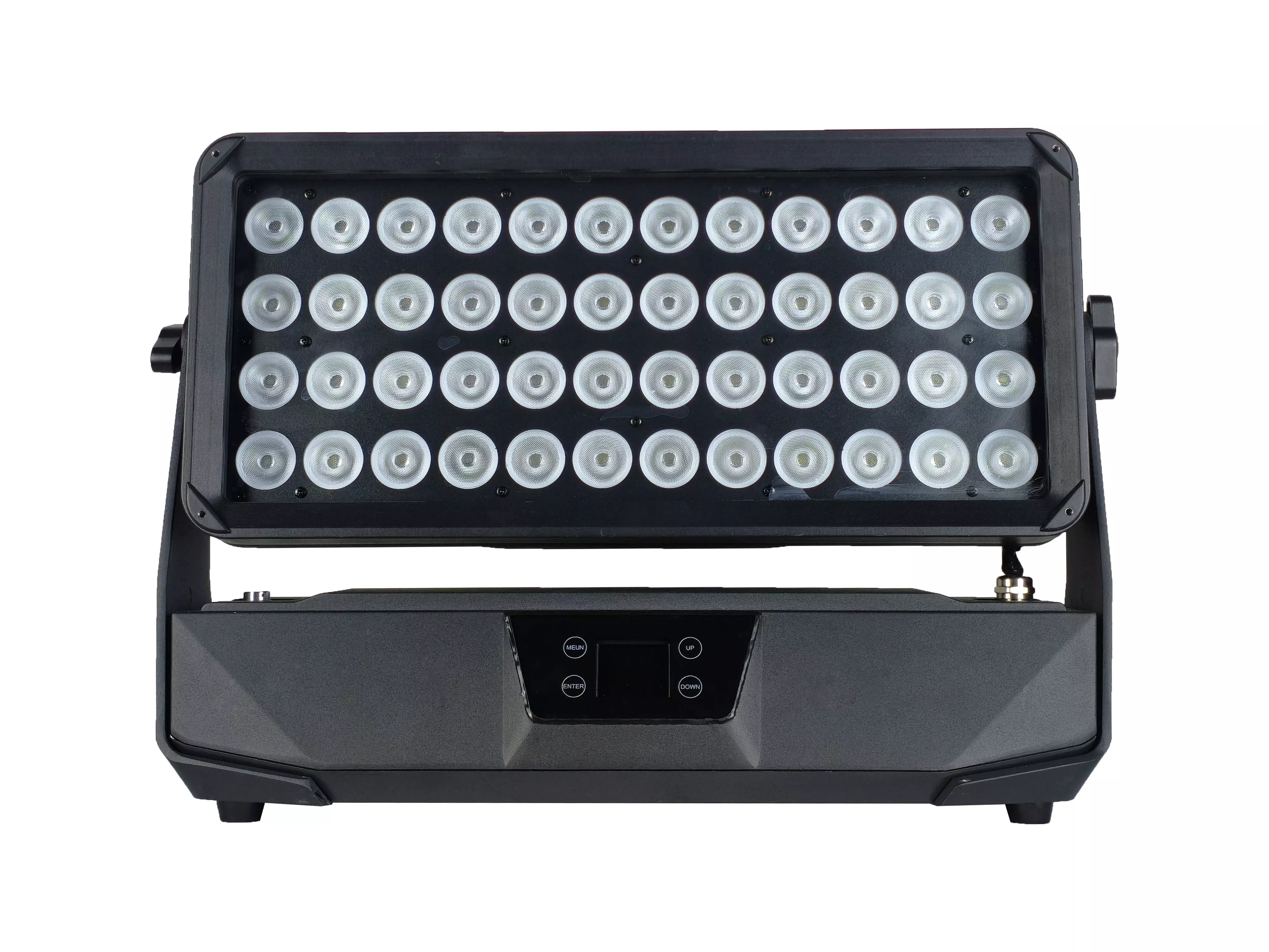 WasherFX 900 is a powerful IP65-rated LED floodlight equipped with 48 high-output RGBL LEDs (20 W each), designed for reliable performance in both indoor and outdoor event lighting. It features a fixed 20° beam, active cooling, multiple control modes including DMX512, RDM, W-DMX, Auto, Sound, and Master-Slave, as well as an intuitive capacitive touch LCD interface for easy operation. Durable aluminium housing and robust waterproof connectors ensure event-ready reliability in demanding environments.
