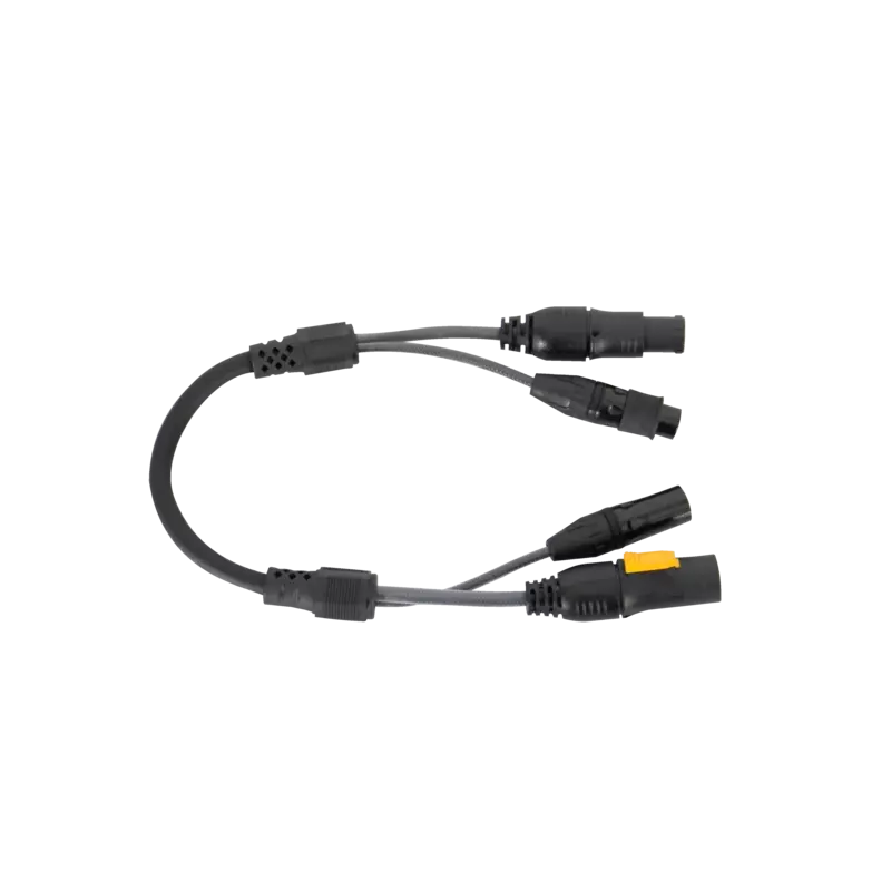 Easy connection – TrueCON in/out and DMX in/out connectors enable quick, organized cabling. The limit of 8 units applies only to power linking; DMX signal can be daisy-chained without restriction. Moreover, each kit includes hybrid patch cables (DMX + power) for fast and clean connections between modularly linked fixtures.