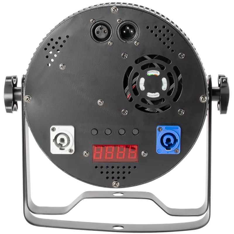 The PAR64 LED 1810 FLAT spotlight is equipped with eighteen RGBW diodes with a power of 10W each. Unique design, narrow aluminum housing, and many control modes make this device a perfect tool for people who value simplicity and reliability. Additionally, the reflector is equipped with a universal double handle, which makes it very easy to hang it or simply place it on the ground.
