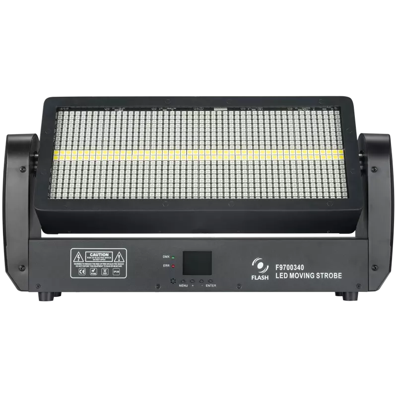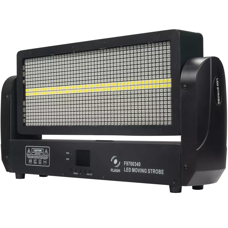 STROBE LED 400 OMEGA FL is equipped with two very strong light sources: 12 RGB sections (864 pcs), 12 WHITE sections (96 pcs), and TILT.The device provides smooth brightness control, many operating modes, independent pixel control functions, and a constant lighting angle (RGB - Strobo WHITE).Additionally, thanks to the steel casing combined with ABS elements and active cooling, it is a very durable and stable device with high technical parameters, ensuring smooth color changes and precise setting of the desired color.