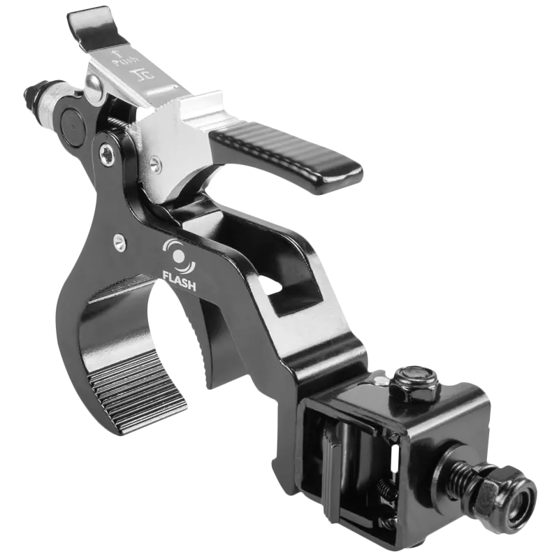 Hak Zaciskowy ALU 100kg "quick trigger" to profesjonalny uchwyt szybko montażowy zaciskowy, umożliwiający przymocowanie wszelkiego rodzaju urządzeń estradowych, oświetleniowych, do rurowych konstrukcjach aluminiowych o średnicy 42-60 mm. Przykręcony bezpośrednio do urządzenia hak, umożliwia bardzo szybki montaż, dzięki zastosowanemu zautomatyzowanego zacisku.Solidna konstrukcja sprawia że hak wytrzymuje obciążenie do 100 kg.