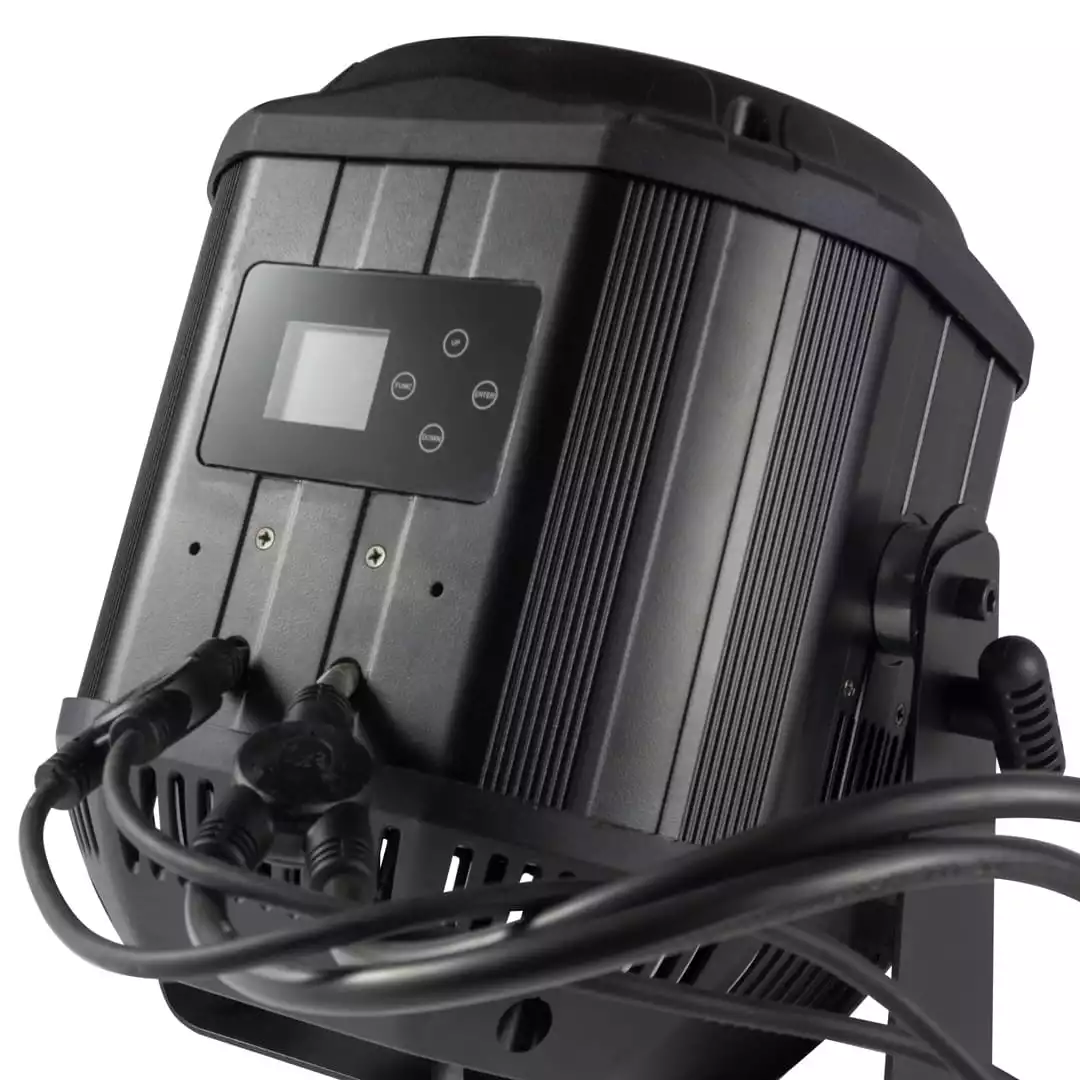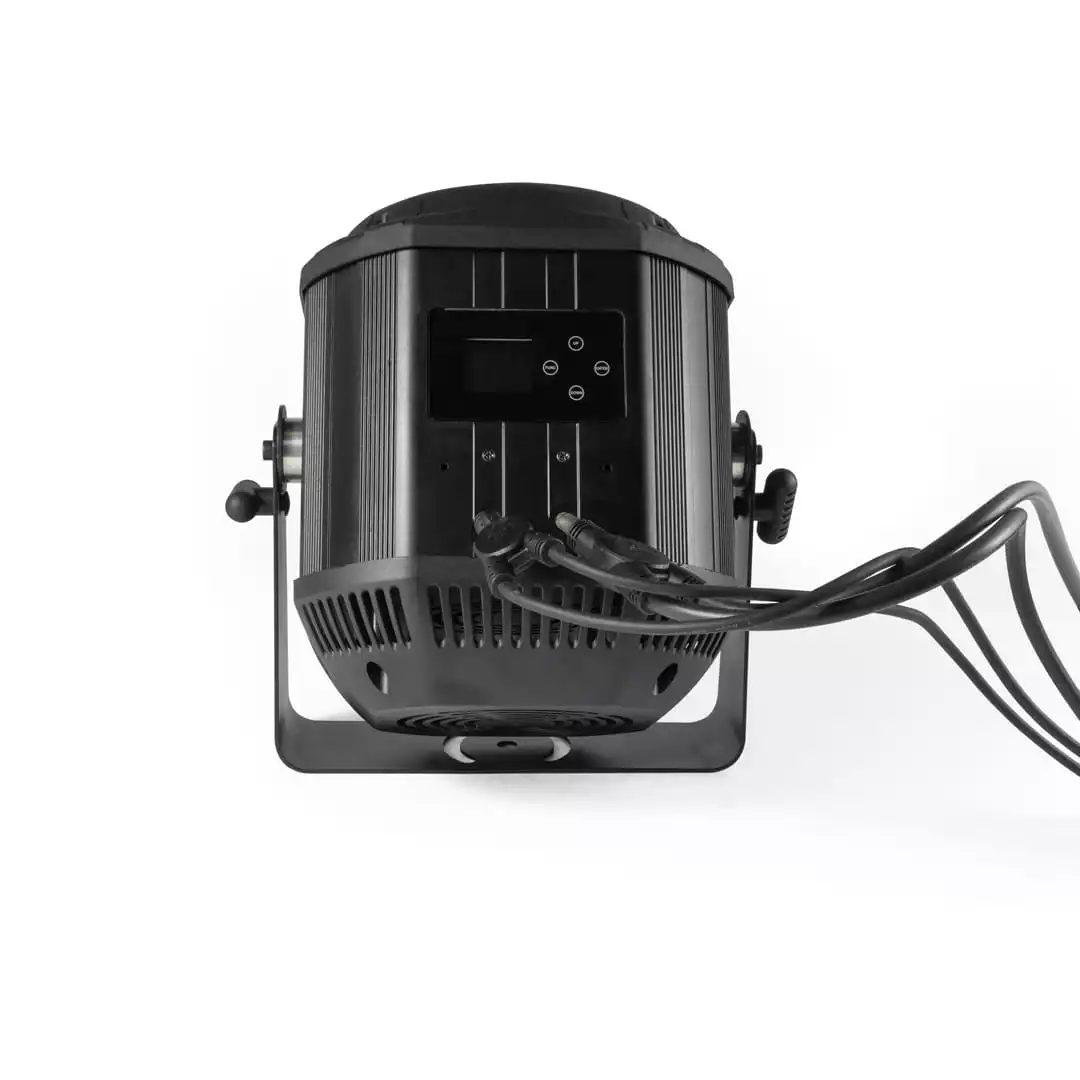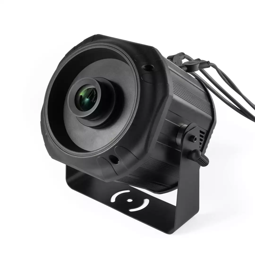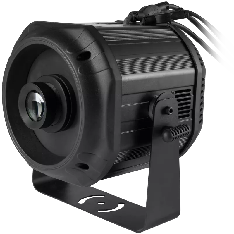 GOBO Projector 200 IP v2111 to profesjonalne urządzenie w klasie wodoodporności IP65, wyposażone w diodę led 230W, o temperaturze barwowej 6500-7000K. Służące do projekcji symboli (gobo) na powierzchniach, z możliwości manualnej regulacji ostrości, kącie świecenia 48° oraz regulacją góra/dół: 180°. W tym kompaktowym urządzeniu zastosowano również, cztery efekty gobo, ze zmienną prędkością oraz wymiennym slot, elektroniczną funkcją pozycjonowania, inteligentny tryb automatycznego uruchamiania off-line, zabezpieczenie przed przegrzaniem źródła światła, wewnętrzne zabezpieczenie elektroniki przed wilgocią oraz wiele trybów pracy.