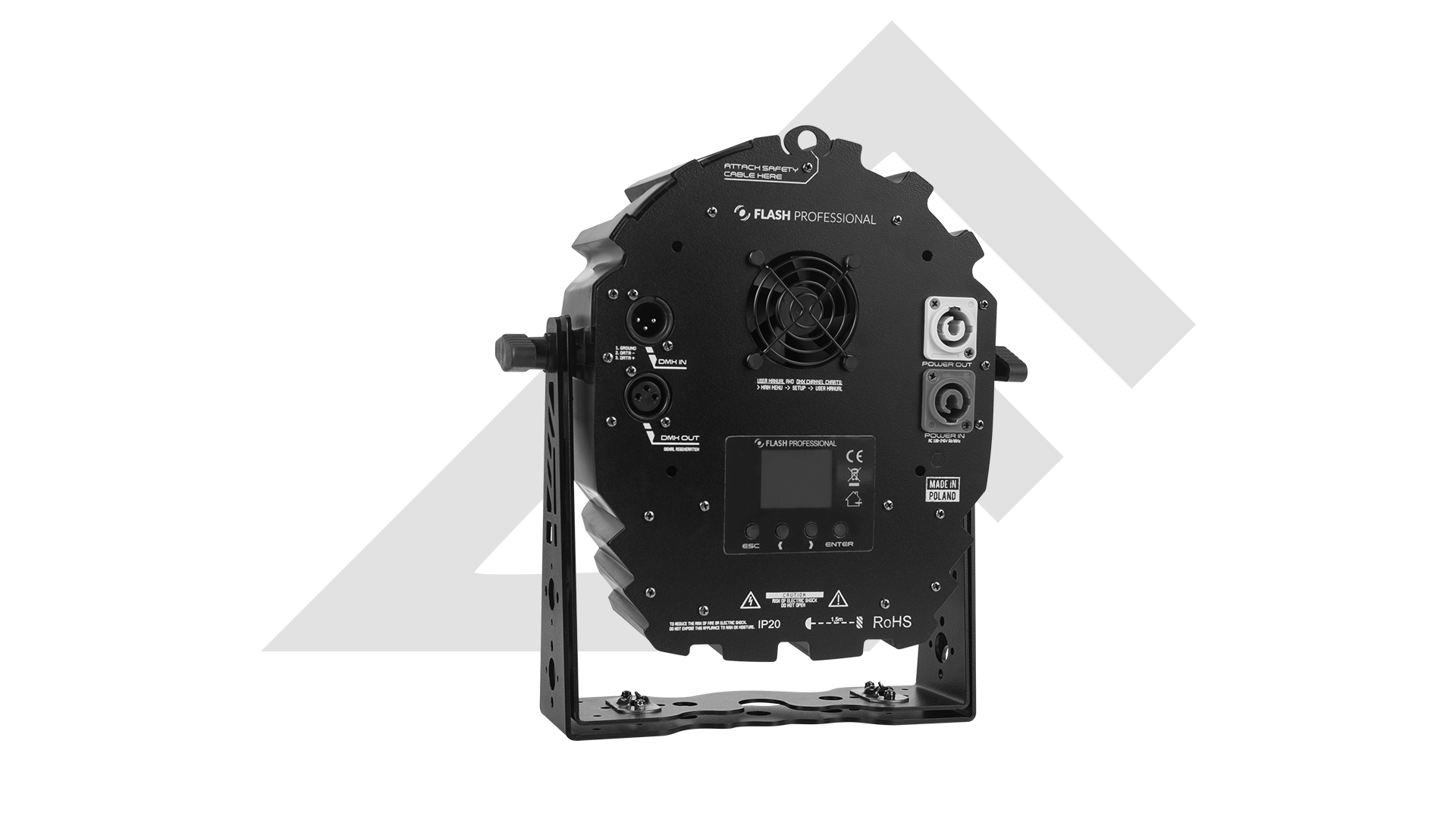 Reflektor LED PAR z siedmioma diodami o łącznej mocy 70W teraz w wersji z bezprzewodowym interfejsem DMX. Brak konieczności łączenia reflektorów przewodami z sygnałem sterującym otwiera przed użytkownikiem niezliczone możliwości wykorzystania tego urządzenia w miejscach, gdzie instalacja oświetlenia jest znacznie utrudniona lub wymaga szybkiego tempa pracy. Tam, gdzie warunki uniemożliwiają prowadzenie kabli, bezprzewodowy interfejs DMX pozwala na utrzymanie łączności i wykorzystanie pełnego spektrum możliwości reflektora dostępnego jedynie podczas sterowania przez DMX. Dodatkowo reflektor jest wyposażony w uniwersalny podwójny uchwyt, dzięki któremu bardzo łatwo go zawiesić lub po prostu postawić na ziemi.