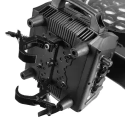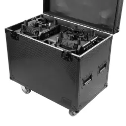 Kupując zestaw dwóch głowic WashFX 1000 CRMX IP65, otrzymasz w komplecie cztery haki montażowe, dwie linki bezpieczeństwa, po dwa przewody zasilające TrueCON i DMX, a całość zapakowana jest w wysokiej klasy, dedykowany case transportowy. Ten przemyślany, idealnie dopasowany do kształtu głowicy case zapewnia optymalne warunki podczas przewożenia i magazynowania, chroniąc głowice przed uszkodzeniami. Cała skrzynia – od sklejki po profile i okucia – utrzymana jest w czerni, co zapewnia spójny, profesjonalny wygląd i sprawia, że pozostaje ona niewidoczny w scenicznej przestrzeni. Wyposażony został również w rozwiązania pozwalające bezpiecznie stokować skrzynie, oraz w dedykowane miejsce na opis.