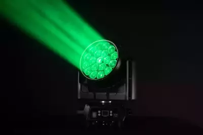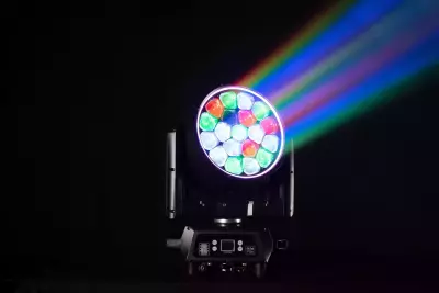 WashFX 1000 wyposażono w dwa potężne źródła światła: główny moduł 19x40W RGBW oraz dodatkowy, efektowy Ring RGB. Ten duet pozwala na tworzenie złożonych i oszałamiających efektów.