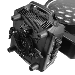 Dzięki rotacji soczewek w całym zakresie zoom, urządzenie oferuje szerokie możliwości kreacyjne – od precyzyjnego, wąskiego beamu po szeroki wash. Co istotne dla rentalu – mechanizm zoomu jest zamknięty wewnątrz obudowy, co znacząco obniża ryzyko awarii w porównaniu z konkurencyjnymi rozwiązaniami.