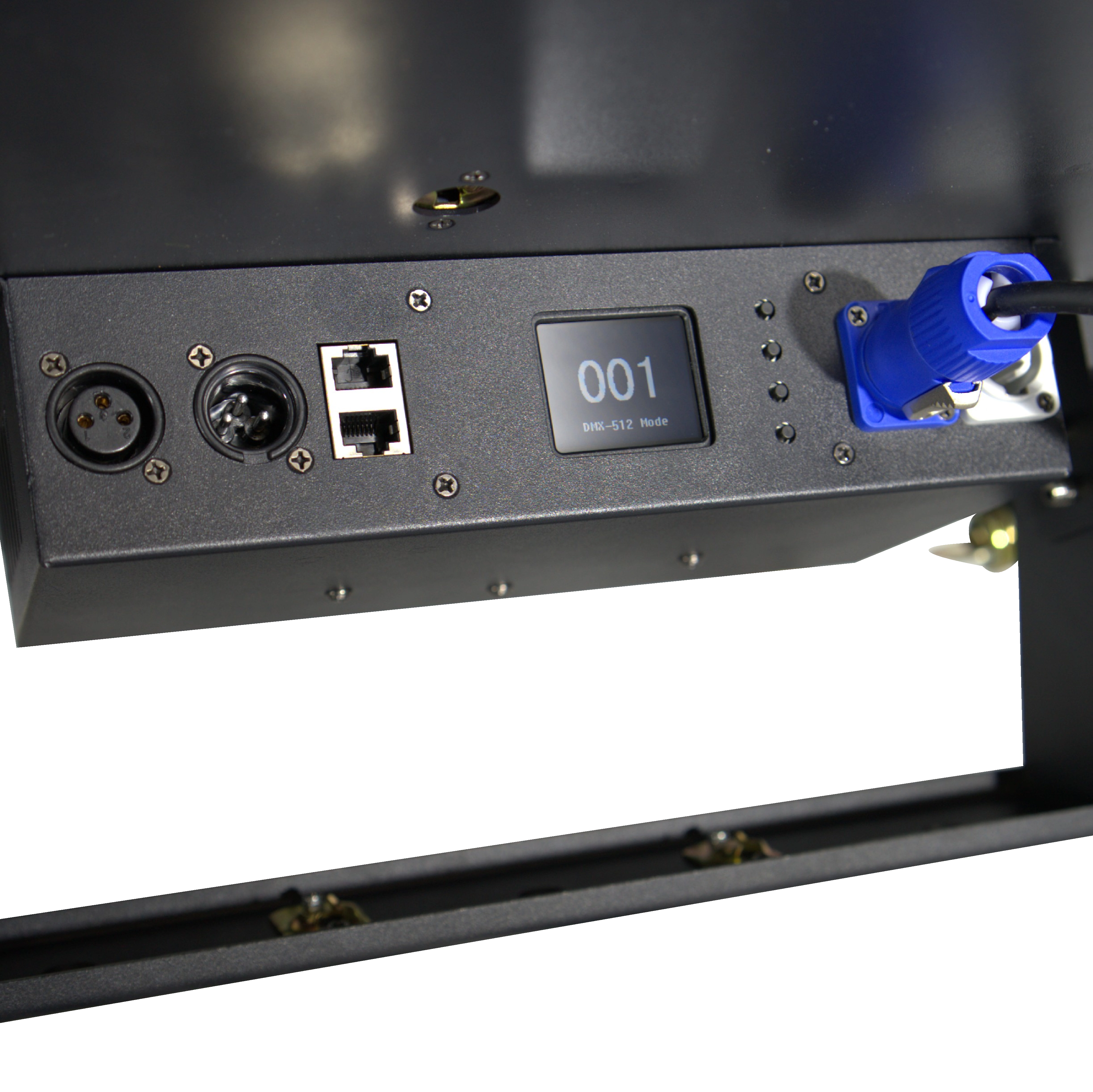 Sterowanie i obsługa Matrix BEAM odbywa się za pomocą wygodnego wyświetlacza LCD. Lampa wspiera różne konfiguracje kanałów: 5, 15, 209, 1372 oraz 1376, co pozwala na elastyczne dopasowanie do potrzeb realizatora. Obsługuje sterowanie DMX512, funkcje RDM oraz Art-Net. Dodatkowo umożliwia płynne elektroniczne ściemnianie w zakresie od 0 do 100%, szybkie migotanie oraz zaawansowane sterowanie matrycą pikselową – zarówno całościowe, jak i pojedyncze, z możliwością uzyskania efektów na bazie nakładania i przekształcania pikseli.